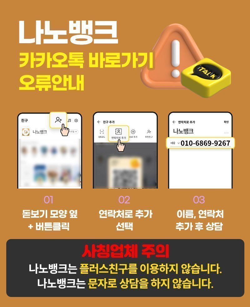 나노뱅크는 카카오톡 채널, 오픈채팅을 운영하지 않습니다.